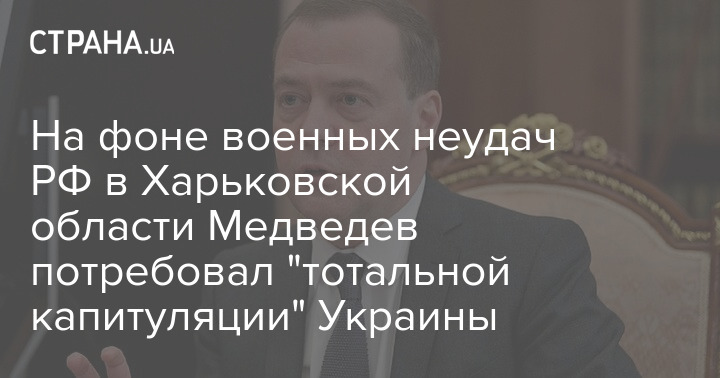 На фоне военных неудач России в Харьковской области зампред Совбеза РФ Дмитрий Медведев потребовал "тотальной капитуляции" Украины.