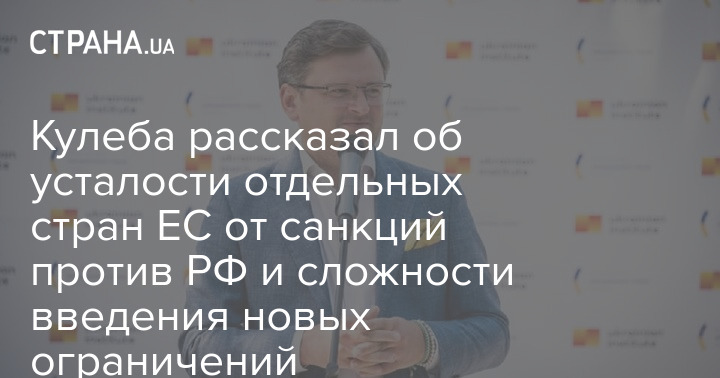 Глава МИД Украины Дмитрий Кулеба заявил, что вопрос введения новых санкций против России в некоторых странах ЕС "несколько угасает", поэтому принятие каждого нового пакета будет даваться сложнее.