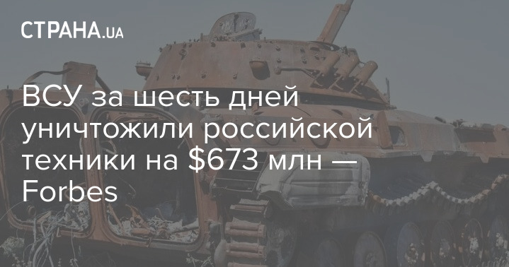 Издание Forbes подсчитало, что ВСУ уничтожили российской техники на $673 млн за шесть дней активного контрнаступления - с 6 по 11 сентября.