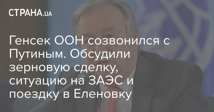 Генсек ООН созвонился с Путиным. Обсудили зерновую сделку, ситуацию на ЗАЭС и поездку в Еленовку