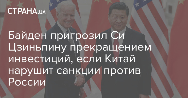 Президент США Джо Байден заявил лидеру Китая Си Цзиньпину о риске прекращения "американских и других" инвестиций в Китай в случае нарушения Пекином санкций против России.