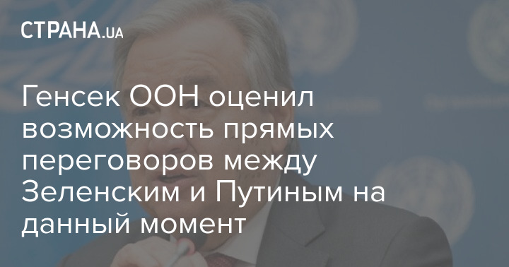 Генсек ООН Антониу Гутерриш считает, что Украина и Россия на данный момент далеки от возможности проведения прямых переговоров между президентами Владимиром Зеленским и Владимиром Путиным.