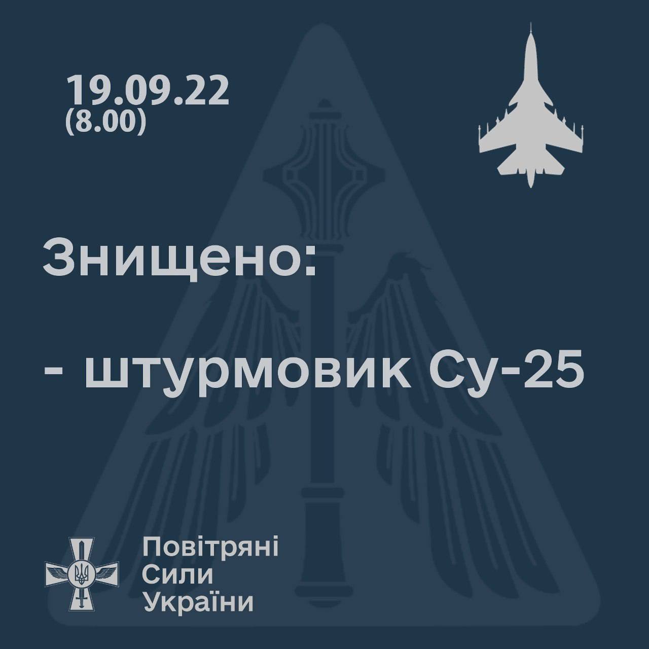 Украинские военные утром в понедельник, 19 сентября, сбили в Херсонской области российский штурмовик Су-25.