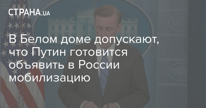 Вашингтону известны сообщения о том, что российский президент Владимир Путин, возможно, готовится объявить мобилизацию. Об этом заявил помощник президента США по нацбезопасности Джейк Салливан на брифинге.