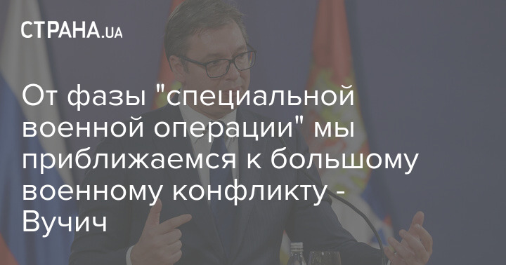 "Предполагаю, что от фазы специальной военной операции мы приближаемся к большому военному конфликту. Вопрос в том, где границы, и скатимся ли мы через некоторое время, а может быть, и через месяц-два, в большой мировой конфликт, какого не было со времен Второй мировой войны", – сказал Вучич.