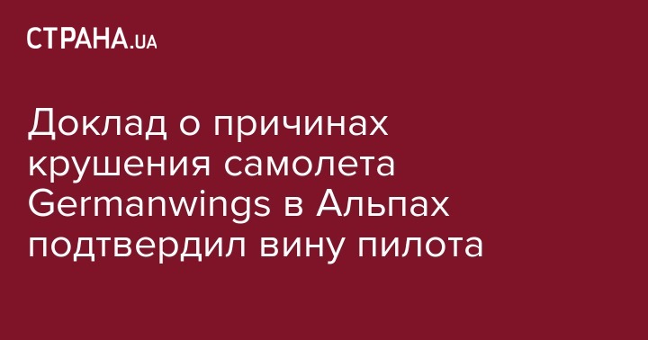Доклад о причинах крушения самолета Germanwings в Альпах подтвердил вину пилота