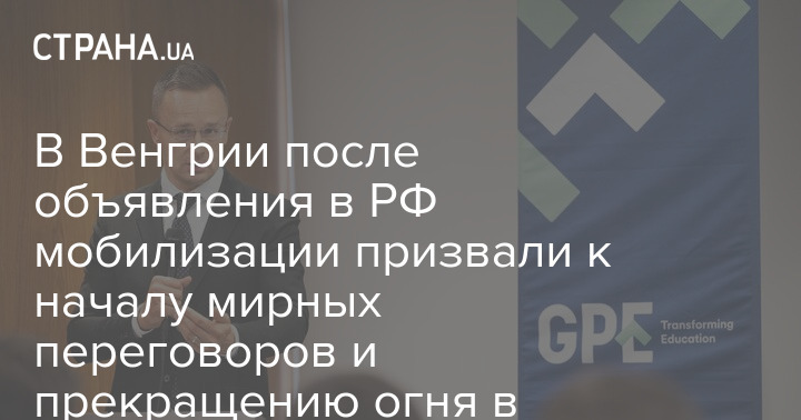 Венгрия продолжает выступать за скорейшее начало мирных переговоров в российско-украинском конфликте. Так глава МИД Венгрии Петер Сийярто прокомментировал новость об объявлении частичной мобилизации в России.