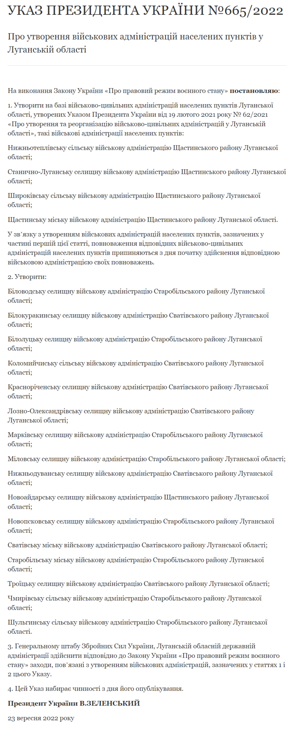 10:12 Президент Украины Владимир Зеленский создал военные администрации на территории Луганской области, которая сейчас подконтрольна России.