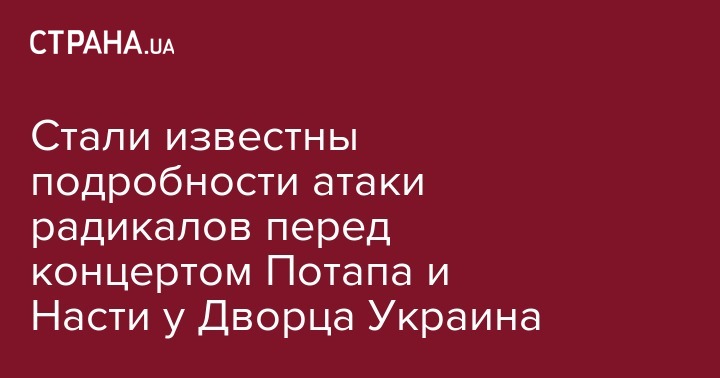 Как сообщала "Страна", в  Киеве перед дворцом "Украина", где должен проходить концерт Потапа и Насти "Золотые Киты", произошли потасовки противников выступления группы с полицией.