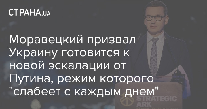 Премьер Польши Матеуш Моравецкий заявил, что с каждым днем режим Владимира Путина ослабевает, поэтому Украине стоит ожидать возможной эскалации в ближайшее время.