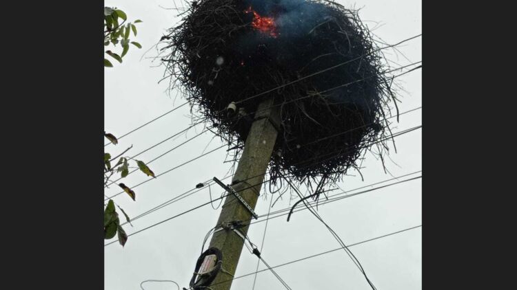 В городе Чортков Тернопольской области спасатели из государственного пожарно-спасательного отряда ликвидировали возгорание гнезда аиста на электроопоре.