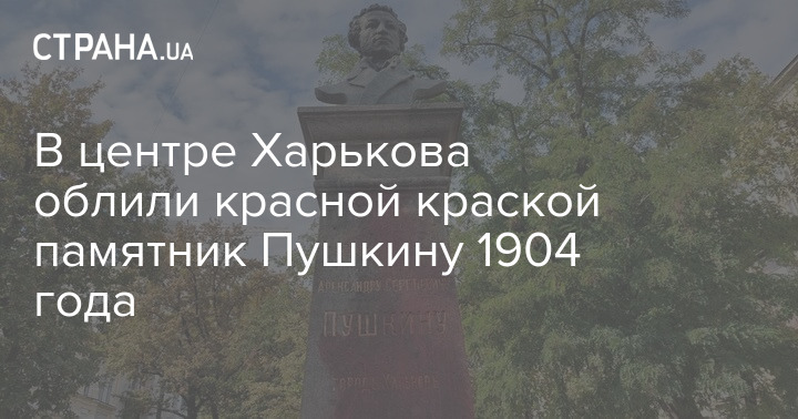 В Харькове облили красной краской постамент памятника поэту Александру Пушкину, установленного на Театральной площади.