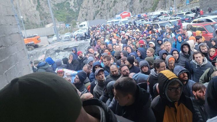 Фото очередей из мужчин на границе РФ и Грузии. Фото: соцсети