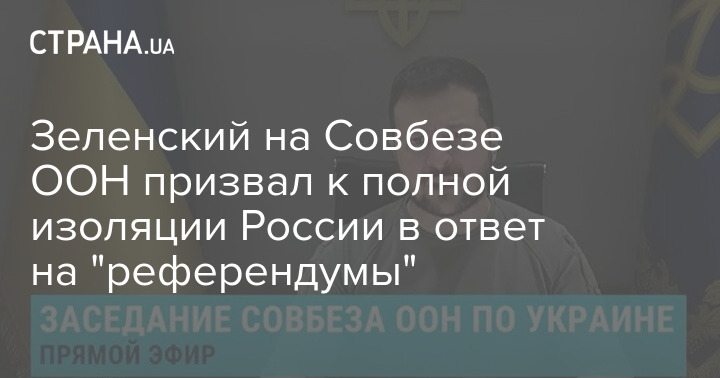 Президент Украины Владимир Зеленский вечером 27 сентября выступил на заседании Совбеза ООН, которое посвящено "референдумам" на неподконтрольной Украине территориях.