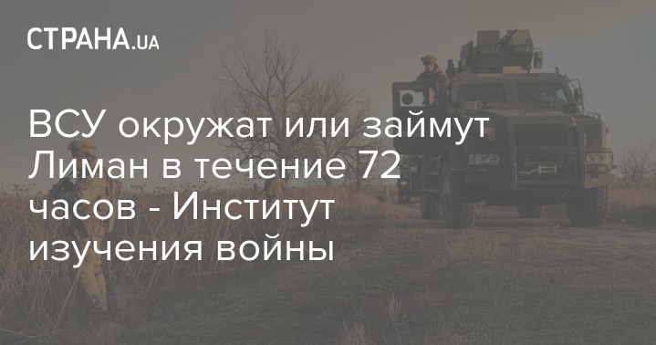 Украинские силы, скорее всего, займут или окружат Лиман в течение следующих 72 часов. Об этом в новой сводке пишет американский Институт изучения войны.