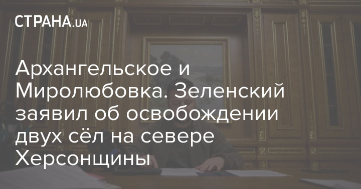 Президент Украины Владимир Зеленский заявил об освобождении сел Архангельское и Миролюбовка на севере Херсонской области.