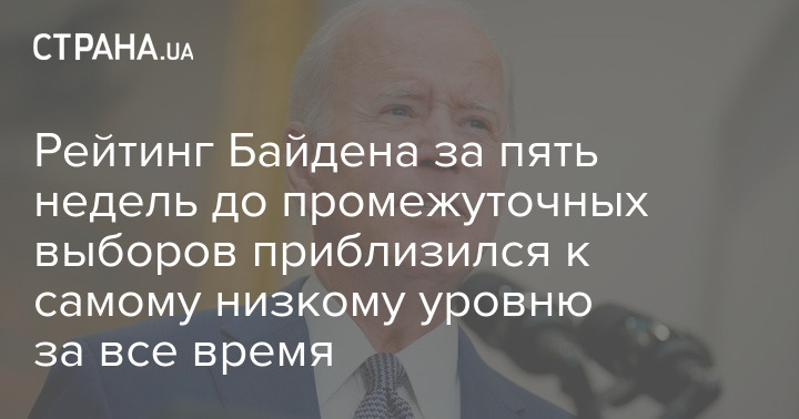 Рейтинг общественного одобрения президента США Джо Байдена за пять недель до промежуточных выборов снизился и приблизился к самому низкому уровню за время его президентства.