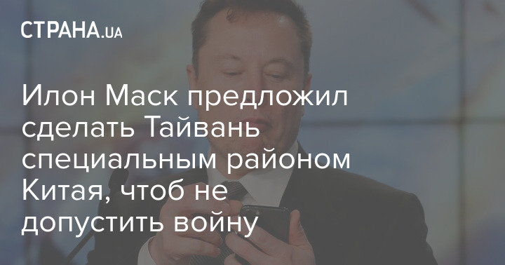 Бизнесмен Илон Маск, который ранее заявлял, что он не хочет третьей мировой войны, предложил сделать Тайвань специальным административным районом Китая по примеру Гонконга и Макао.