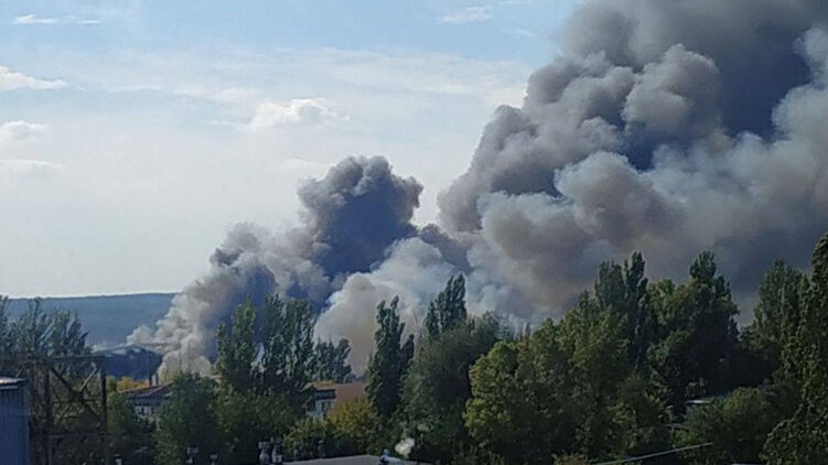 Попадание в районе молокозавода, рядом с многоэтажной застройкой. На видео видны огромные клубы дыма.