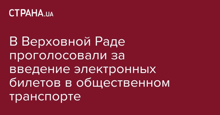 Верховная Рада намерена регламентировать внедрение автоматизированных систем оплаты проезда в городском общественном транспорте (электронный билет). За принятие за основу законопроекта №4121 проголосовали 227 депутата при минимально необходимых 226.