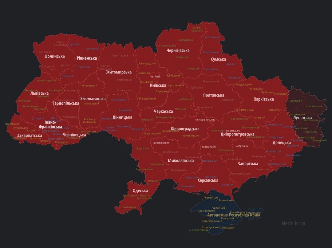 07.43 Уже вся подконтрольная Украине территория находится под угрозой воздушной атаки.