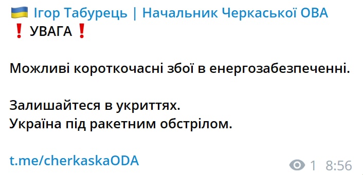 10.00 В Черкасской области заявили о вероятных сбоях в энергоснабжении из-за обстрелов.