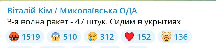 07.45 По Николаеву ночью россияне выпустили 10 ракет С 300. Предварительно без жертв.