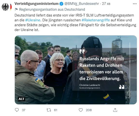"Все выражают соболезнования, но я говорил каждому собеседнику, что уважаю и благодарю за нее, но сейчас нужны системы противовоздушной обороны, системы противоракетной обороны и даже просто дизельные генераторы", – добавил министр.