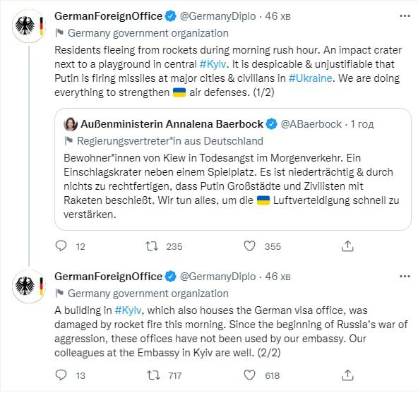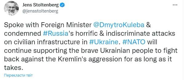 20:38 Глава МИД Дмитрий Кулеба заявил, что никто из его западных коллег не говорил о переговорах с Россией, звоня по телефону после сегодняшних российских ракетных ударов.