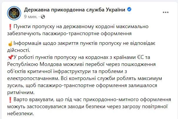 Причина не указывается, но, судя по всему, произошло это из-за ракетных обстрелов.
