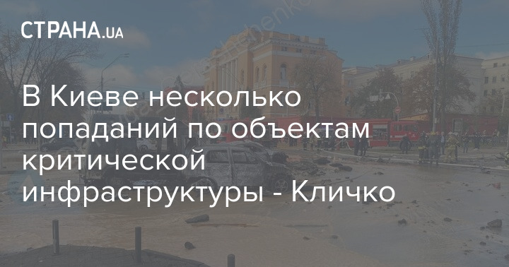Мэр Киева Виталий Кличко сообщил, что утром 10 октября несколько попаданий пришлось по "объектам критической инфраструктуры". Об этом он написал у себя в телеграм-канале.