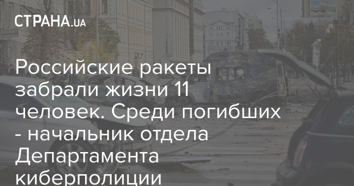 "Российские ракеты унесли жизни 11 человек. Среди них - 41-летний полковник полиции, начальник отдела Департамента киберполиции Юрий Заскока. Полицейский в момент удара как раз ехал по бульвару Шевченко на работу", - сообщил глава Нацполиции Игорь Клименко.