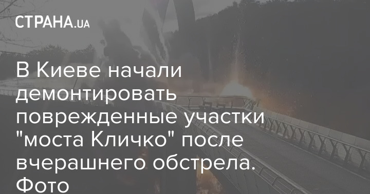 В Киеве начали ремонтировать "мост Кличко" после удара вражеской ракетой. Фото: Скриншот из видео
