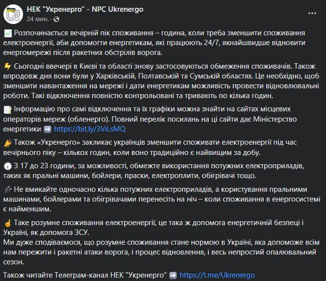 Напомним, после массированной ракетной атаки вчера Офис президента призвал украинцев ограничить потребление электричества. Позже с такой просьбой выступил и Владимир Зеленский.