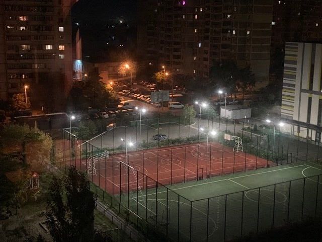Здесь, как пишут читатели "Страны", настоящий "Лас-Вегас": поздним вечером ярко освещены все окна и пустое футбольное поле.