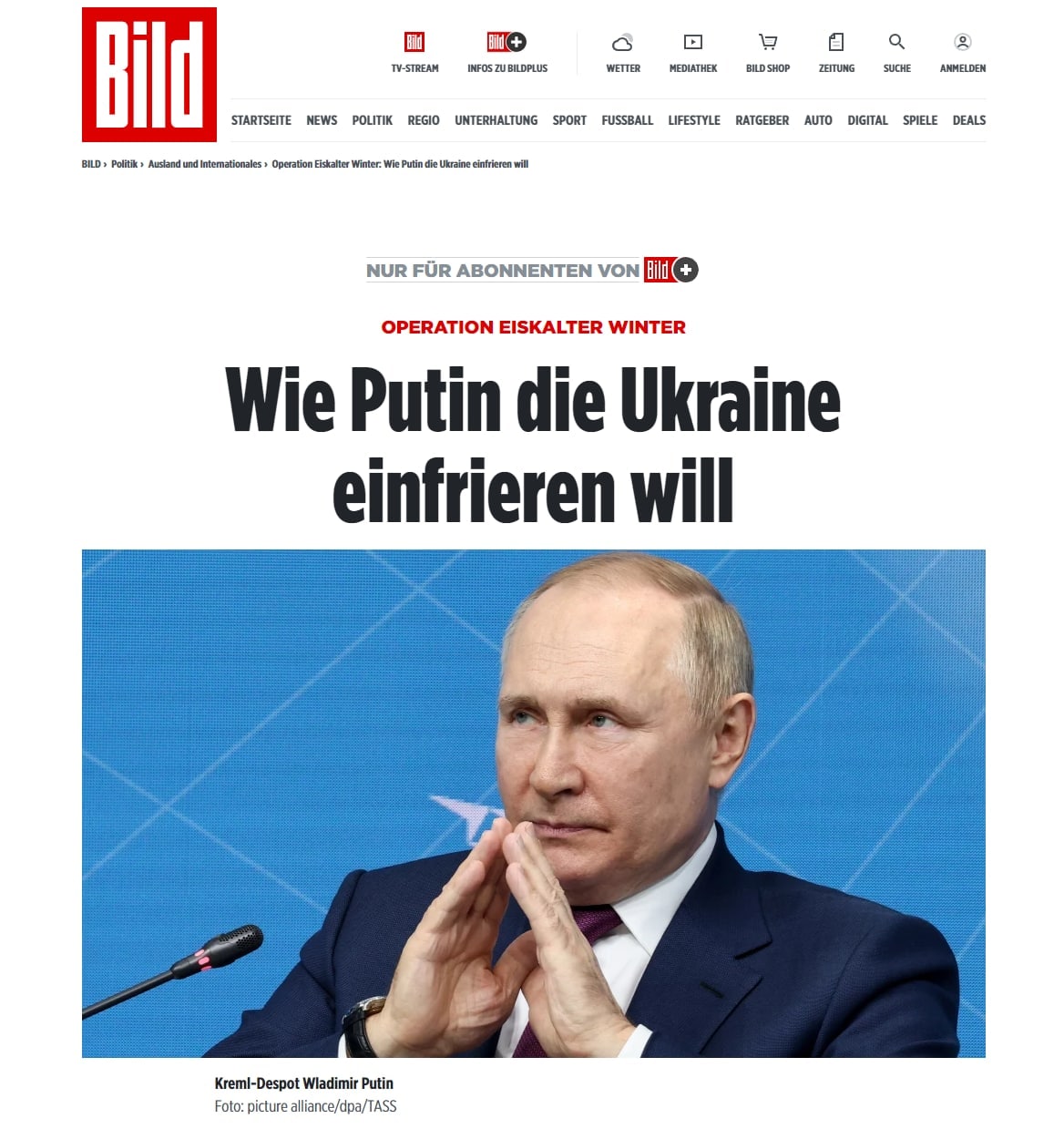 09.30 "Операция "Ледяная зима": Как Путин хочет заморозить Украину". С таким заголовком вышел материал у немецкого Bild.