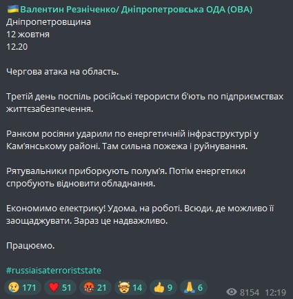 В среду, 12 октября, в Украине идет уже 231-й день войны с РФ.