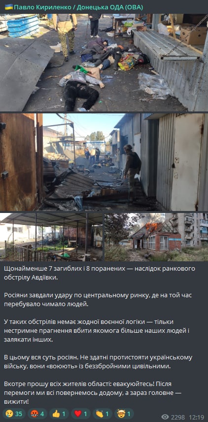 08.10 Губернатор Донецкой области Павел Кириленко заявил о гибели шести мирных жителей за минувшие сутки: четверых в Лимане и двух в селе Терны.