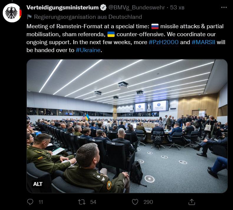 2. Сообщил о заседании "Раммштайн-6", где обсуждают передачу Украине средств ПВО.