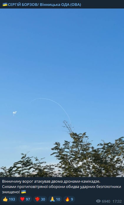 Перед этим пилот уничтожил пять «шахидов»: три – на юге Украины и два – над Винницей. А накануне, во время массированного ракетного обстрела, сбил две крылатые ракеты.