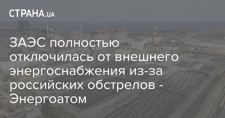 ЗАЭС полностью отключилась от внешнего энергоснабжения из-за российских обстрелов - Энергоатом