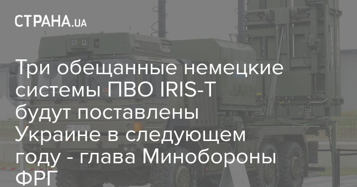 Три немецких системы ПВО IRIS-T, которые Германия обещала передать Украине, будут поставлены в нашу страну в следующем году.
