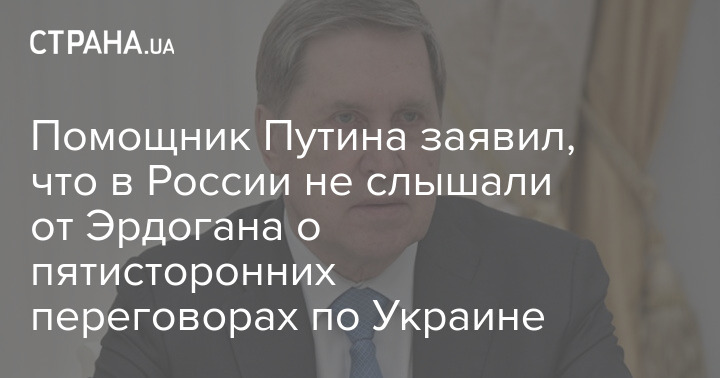 Помощник президента России Владимира Путин Юрий Ушаков заявил, что в РФ "никогда не слышали от Эрдогана идею проведения пятисторонних переговоров об Украине".