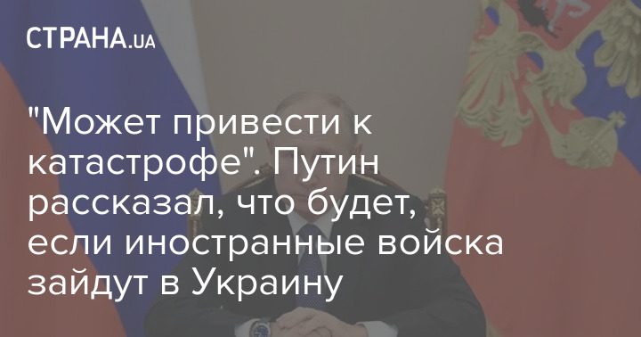 Президент РФ Владимир Путин сказал, что если войска иностранных государств зайдут в Украину и вступят в прямое столкновение с армией РФ, то это будет "опасный шаг, который может привести к катастрофе".