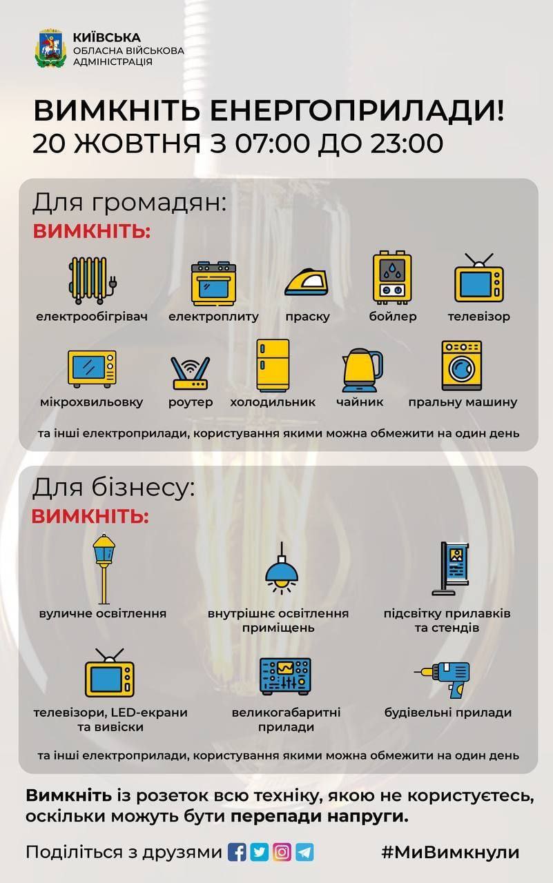 20.45 В Киевской областной военной администрации призывают к тотальной экономии света и завтра.