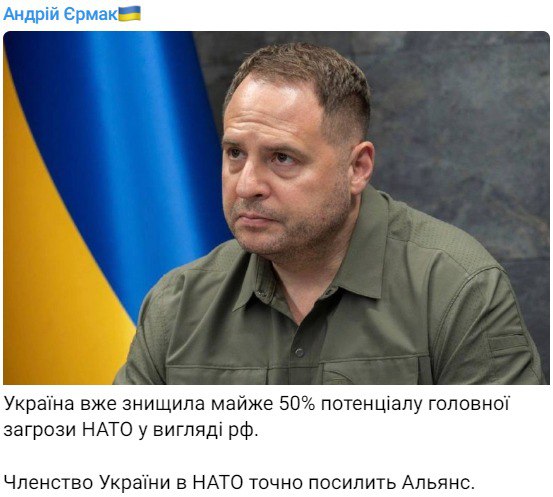 Нынешний нарратив, по словам Ермака - "Украина должна прекратить освобождение территорий, чтобы предотвратить новую мировую войну".