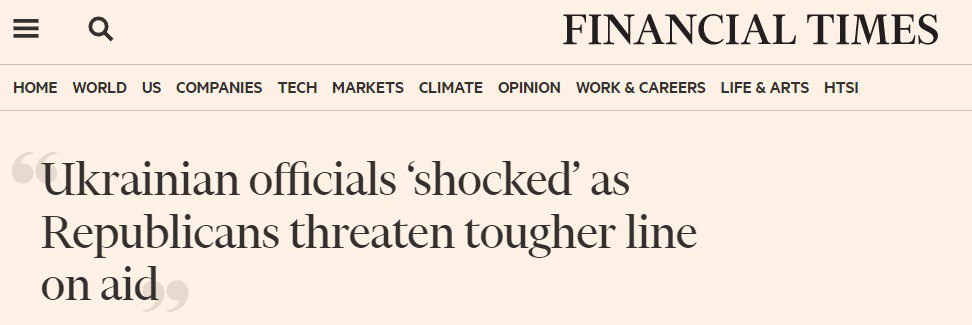«Когда лидер меньшинства Кевин Маккарти — вероятный спикер Палаты представителей Республиканской партии в следующем году — предложил на этой неделе отказаться от американского финансирования борьбы Украины против России, это был не первый сигнал администрации Байдена о том, что республиканские законодатели проявляют осторожность в отношении продолжительной финансовой поддержки Киева.
