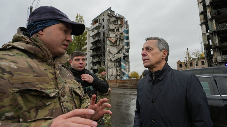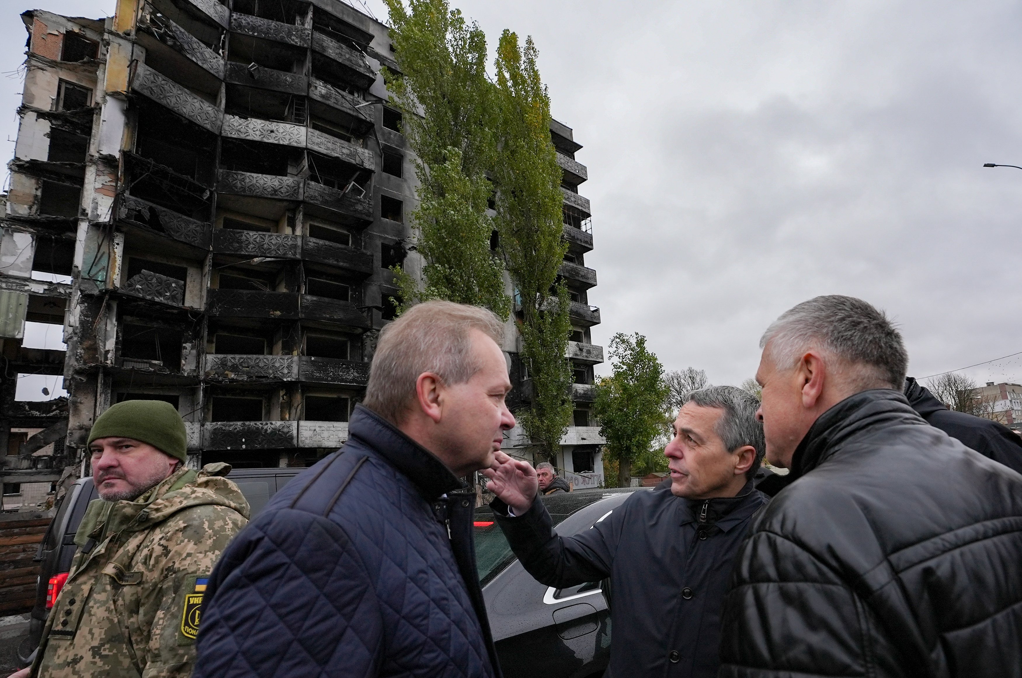 Президент Швейцарии Игнацио Кассис, который в четверг утром прибыл в Украину, посетил Бородянку и Иванков Киевской области.