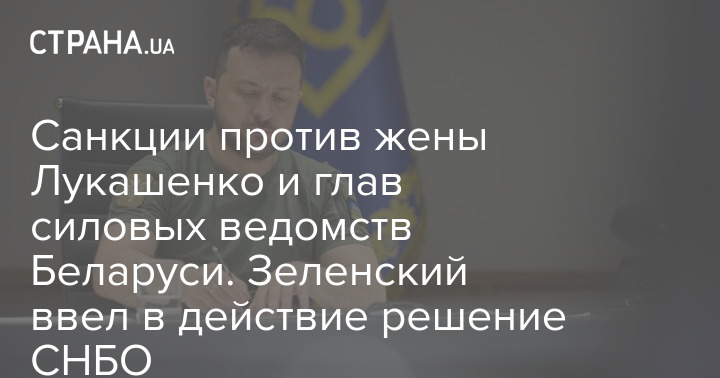 Санкции против жены Лукашенко и глав силовых ведомств Беларуси. Зеленский ввел в действие решение СНБО