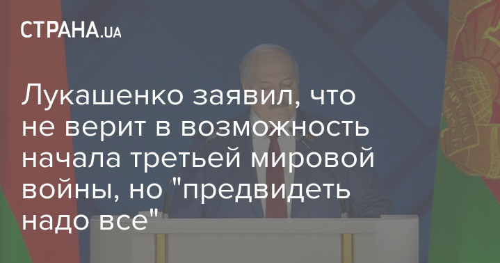 "Предвидеть надо все и опасаться всего. Ну кто сегодня может сказать, что не разразится третья мировая война. Мы как никогда близки к ней. Но я не верю, что третья мировая война будет. Потому что опасность в том, что третья мировая война приведет к уничтожению всех и вся. Ну кому хочется сегодня помереть", - сказал Лукашенко.
